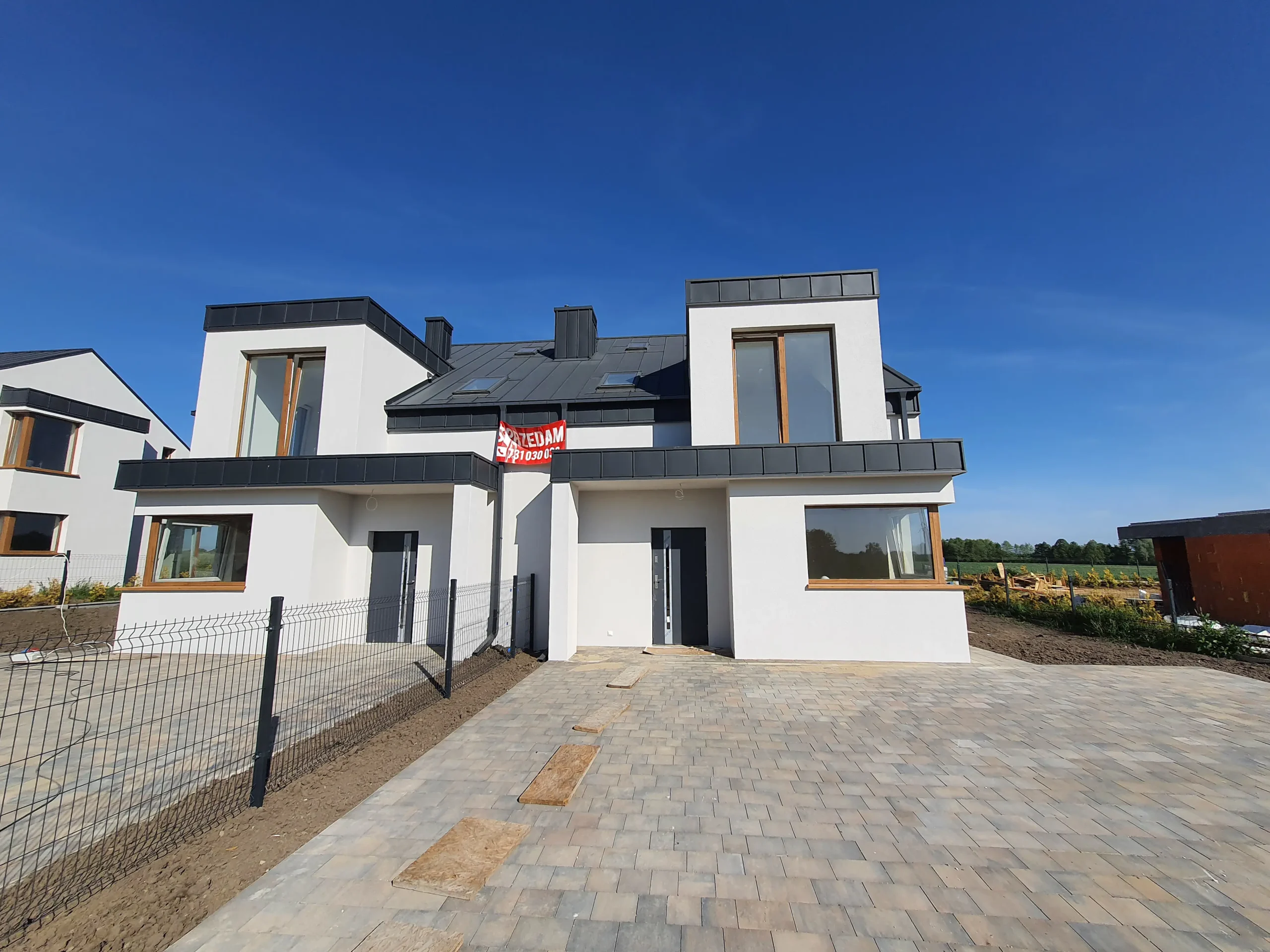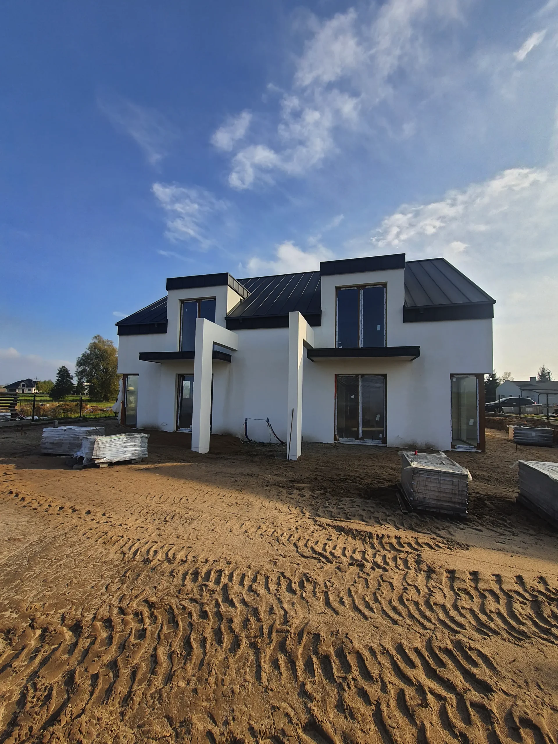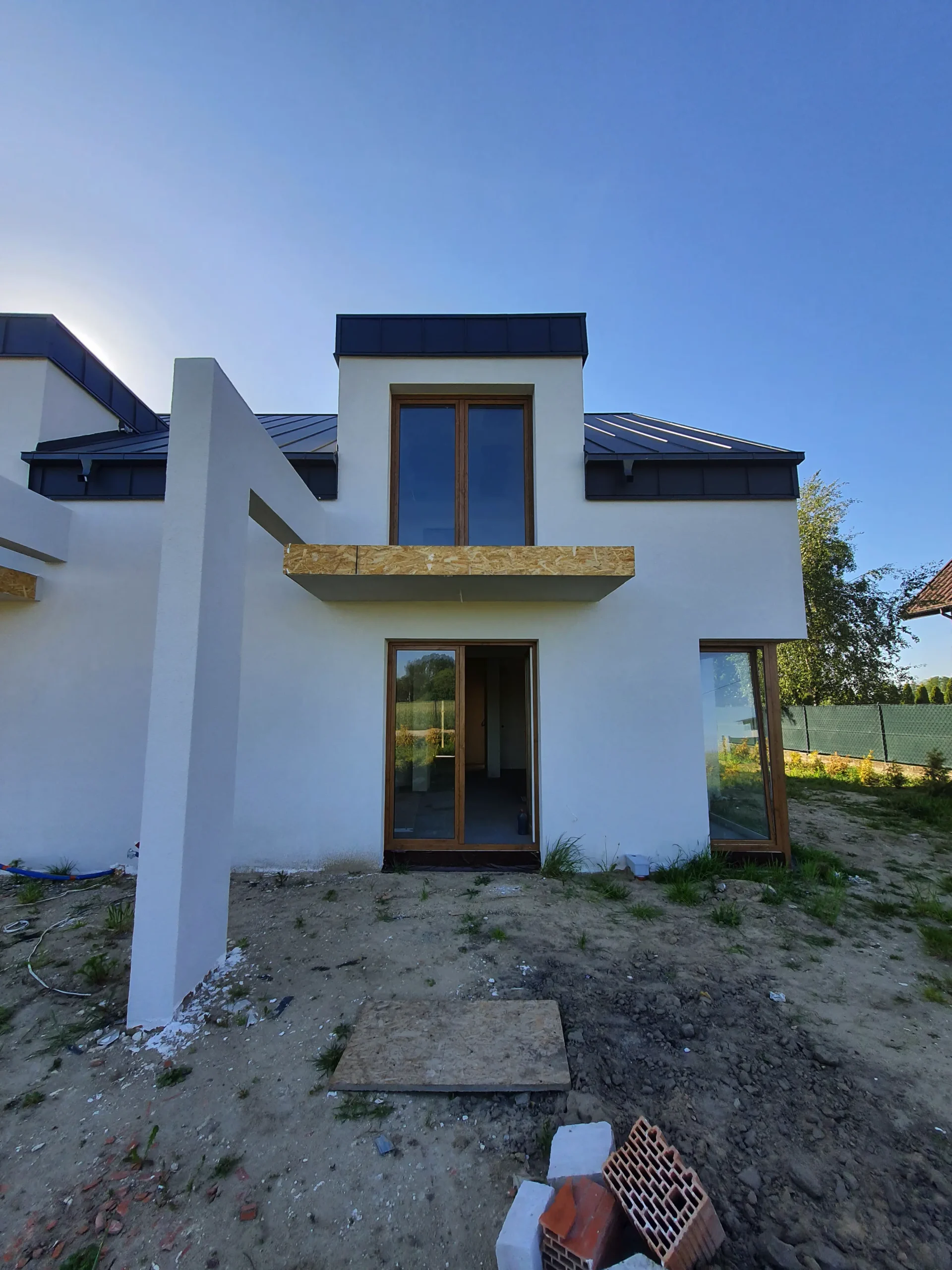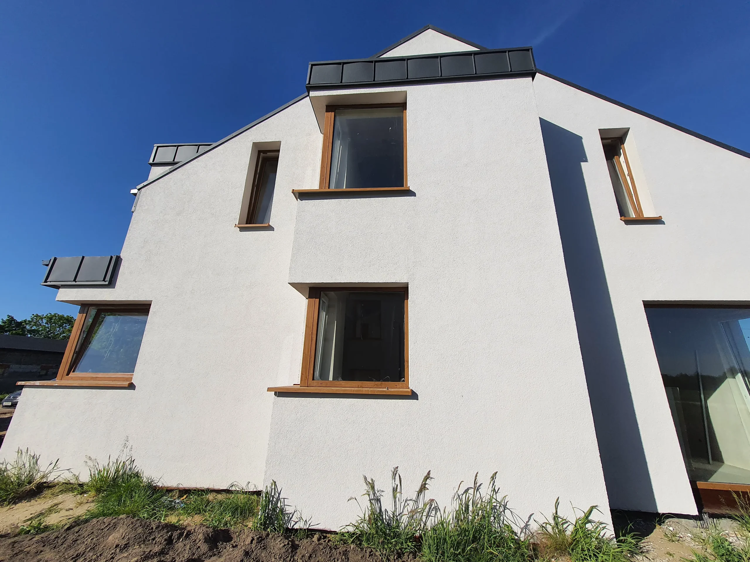 Realizacja obejmująca dostawę i montaż okien w systemie Aluplast dla domu w Rogowie. Zastosowano pakiety trzyszybowe z ciepłą ramką oraz elegancki kolor winchester. Montaż przeprowadzono na poszerzeniach systemowych Aluplast, co pozwoliło na optymalne dopasowanie do konstrukcji budynku. W projekcie wykorzystano także nowoczesne okna narożnikowe, zapewniające lepszy dostęp światła i ciekawy efekt architektoniczny.